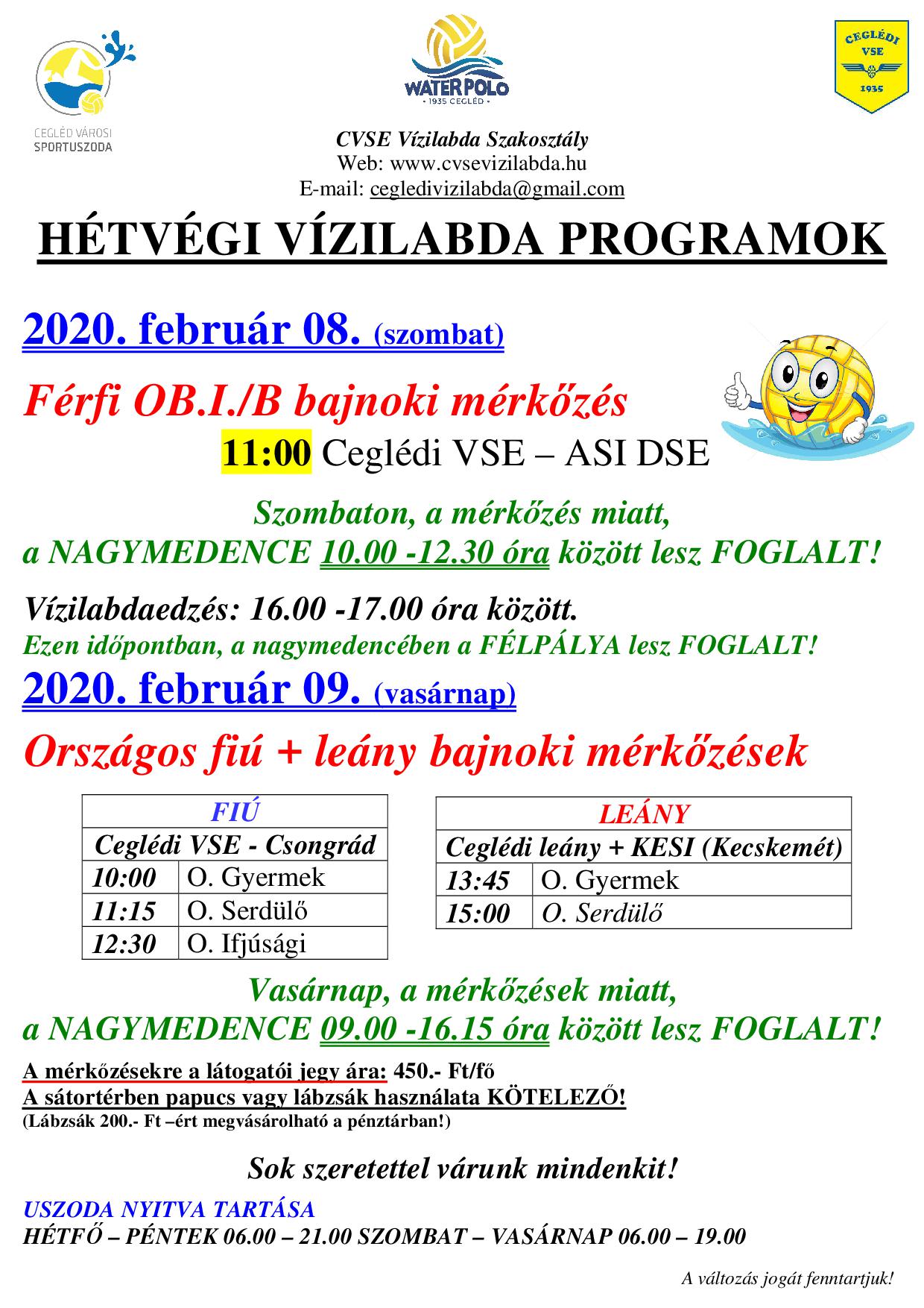 Hétvégi vízilabda programok! (Febr.08.-09.)