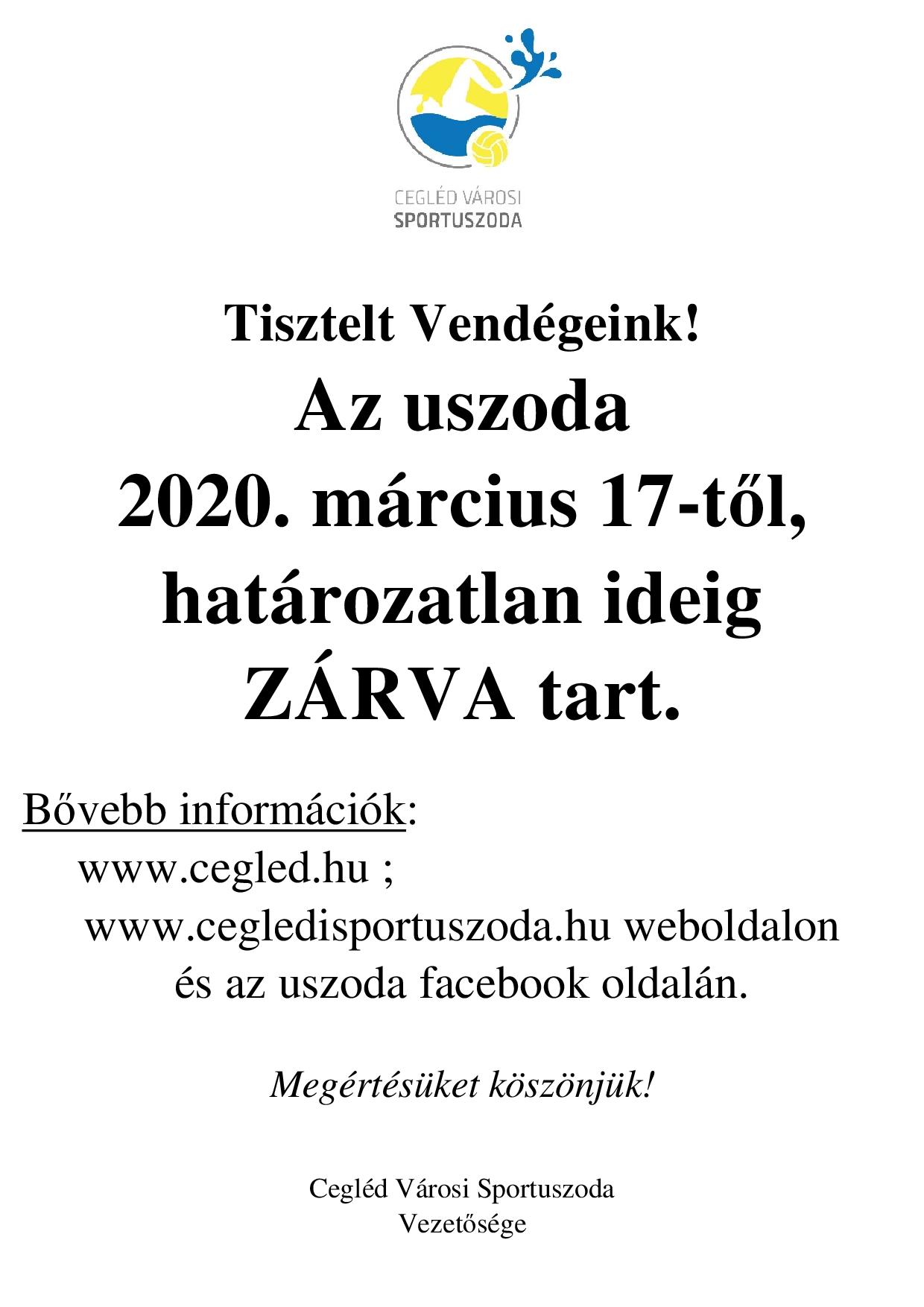 Március 17-től az uszoda zárva tart!