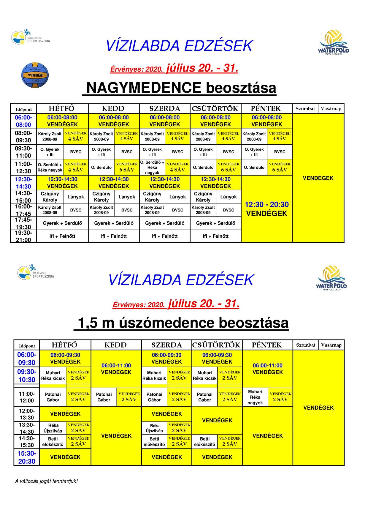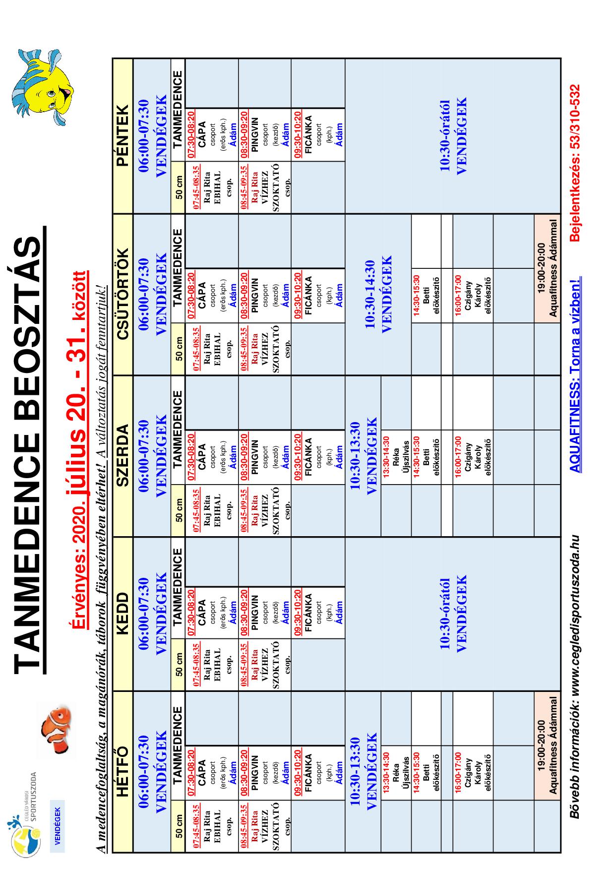 Medencebeosztások 07.20-tól!