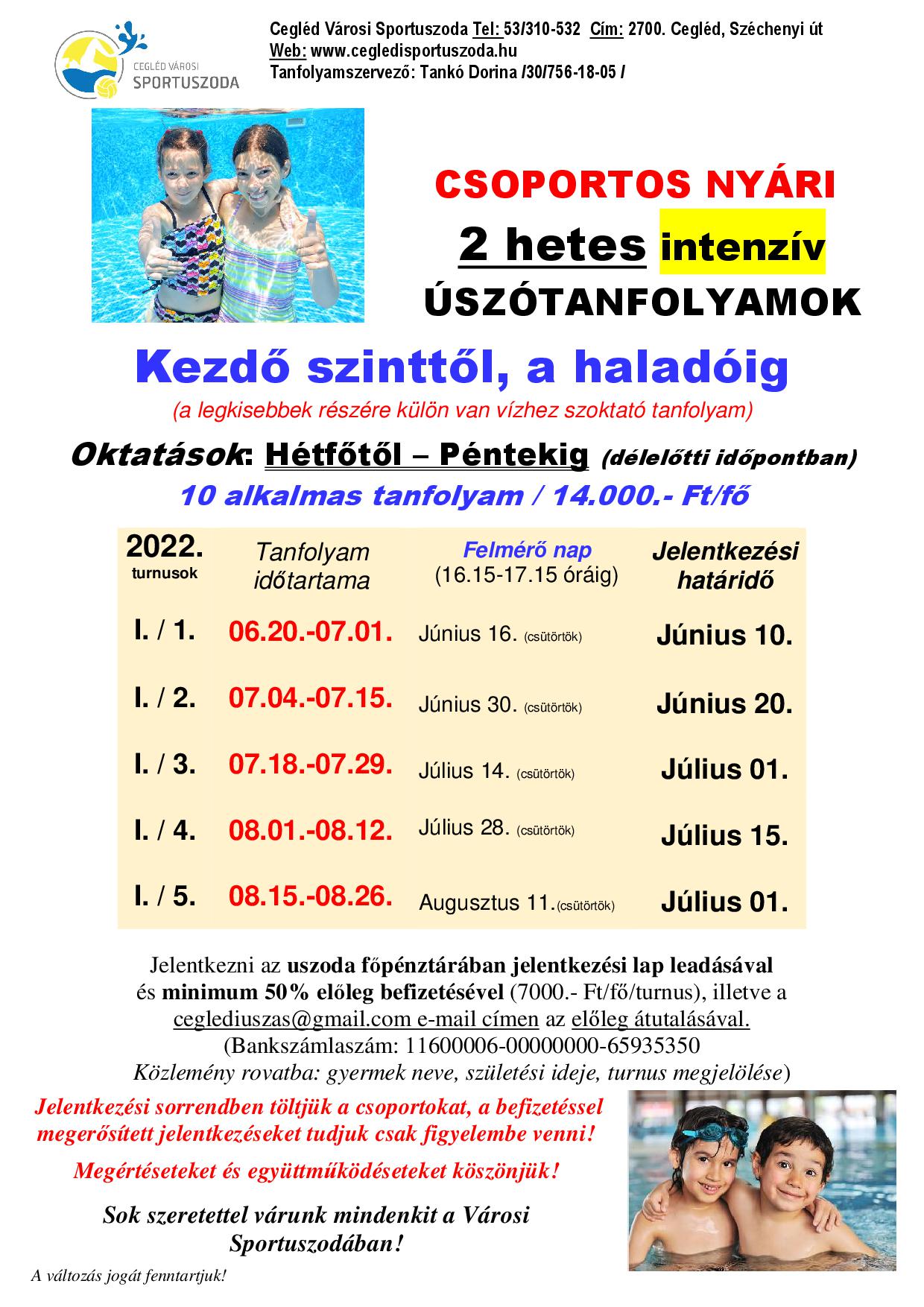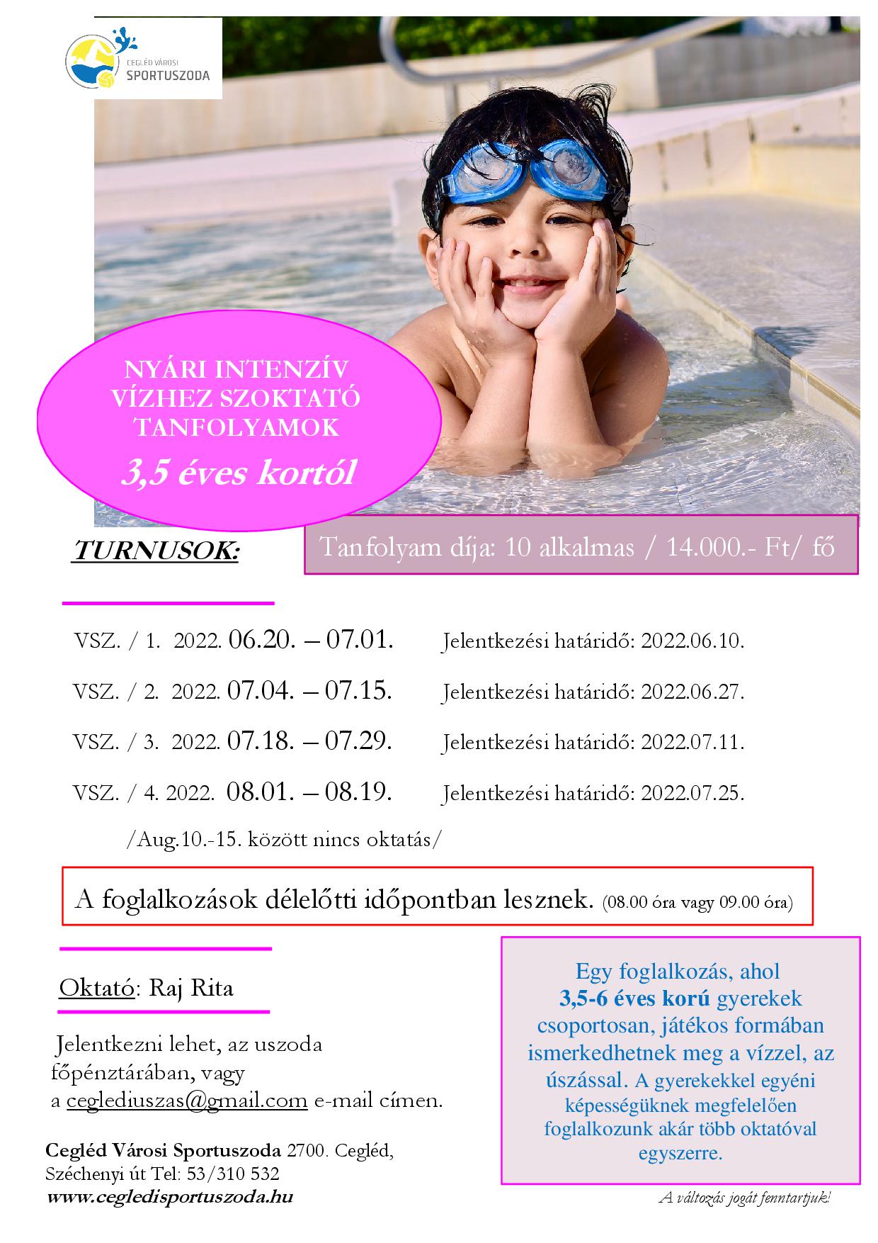 Nyári intenzív vízhez szoktató - és úszásoktatás tanfolyamok!