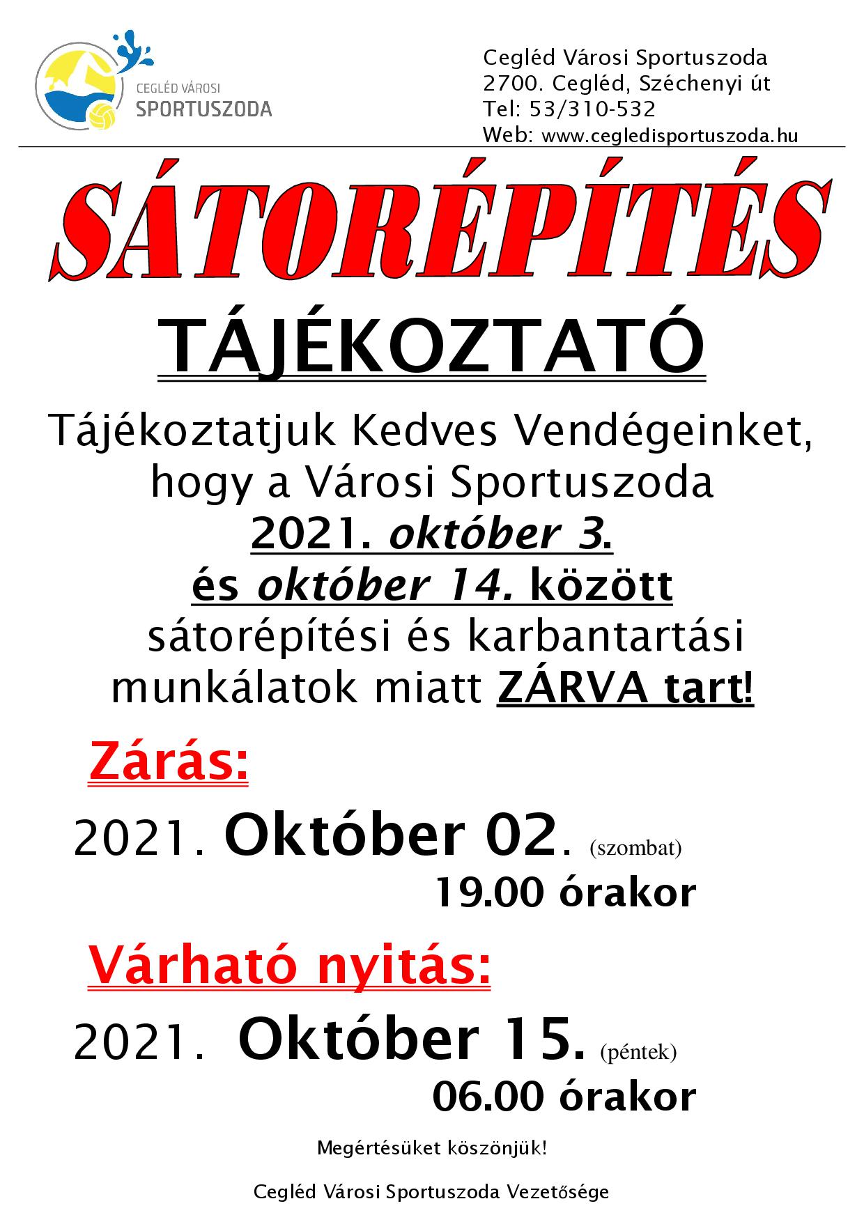 Október elején kezdődnek a sátorépítési munkálatok!