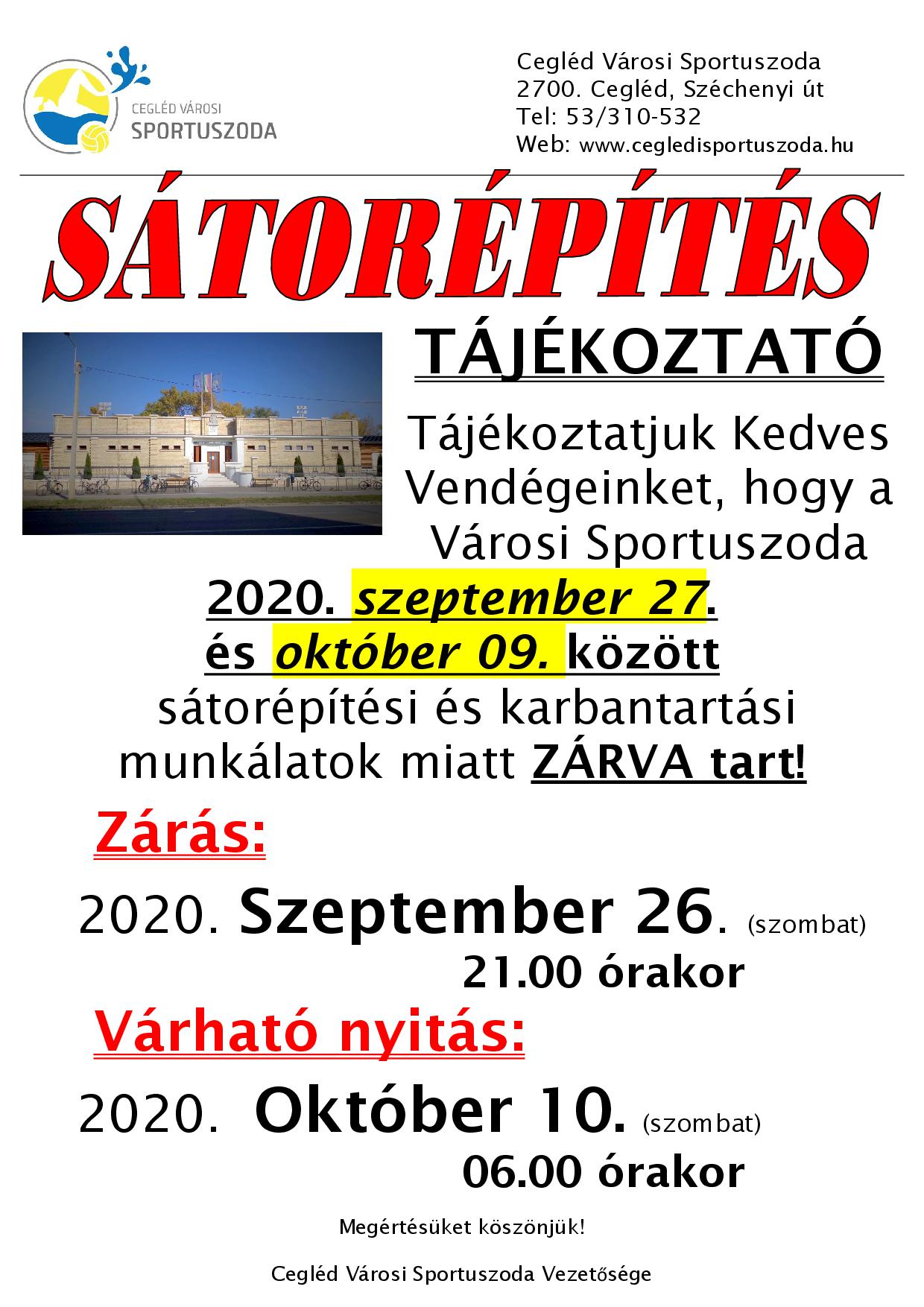 Sátoréptítés 2020. szeptember!