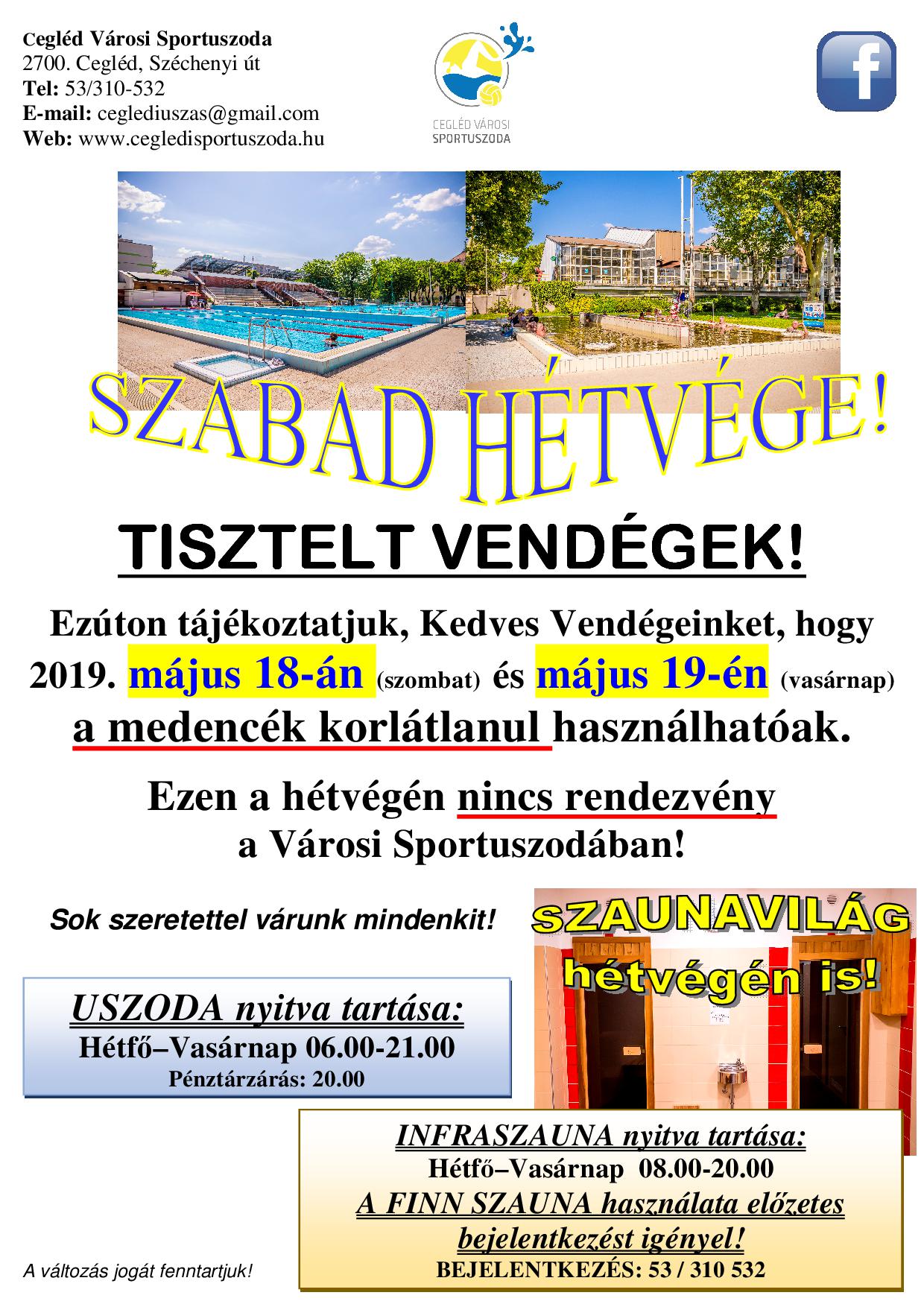 SZABAD HÉTVÉGE! (Május 18-19.)