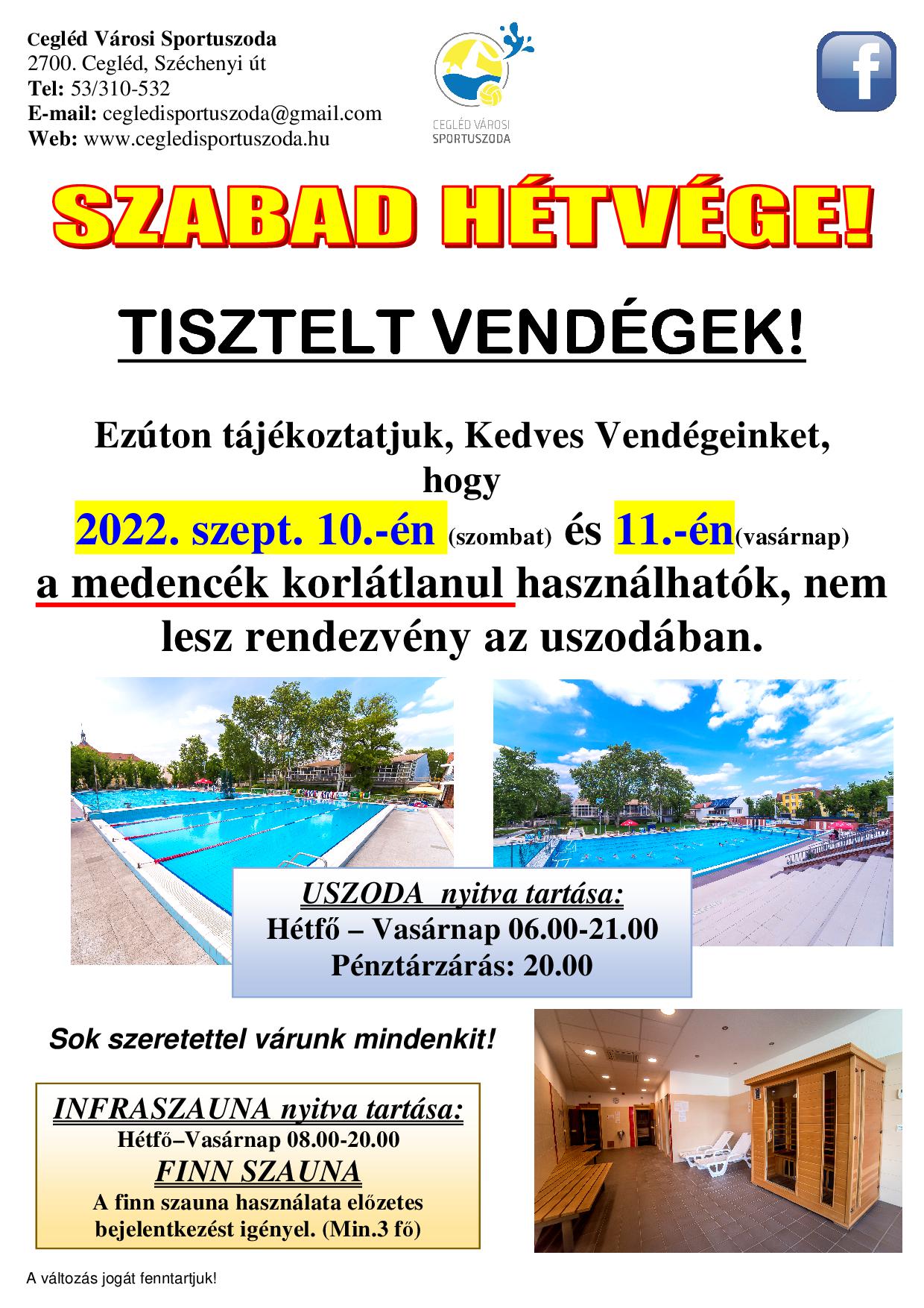 Szabad hétvége! (Szept.10.-11.)