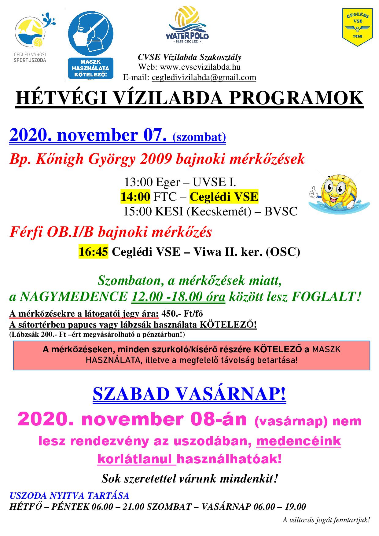 Szombati vízilabda program, VASÁRNAP SZABAD VASÁRNAP lesz!