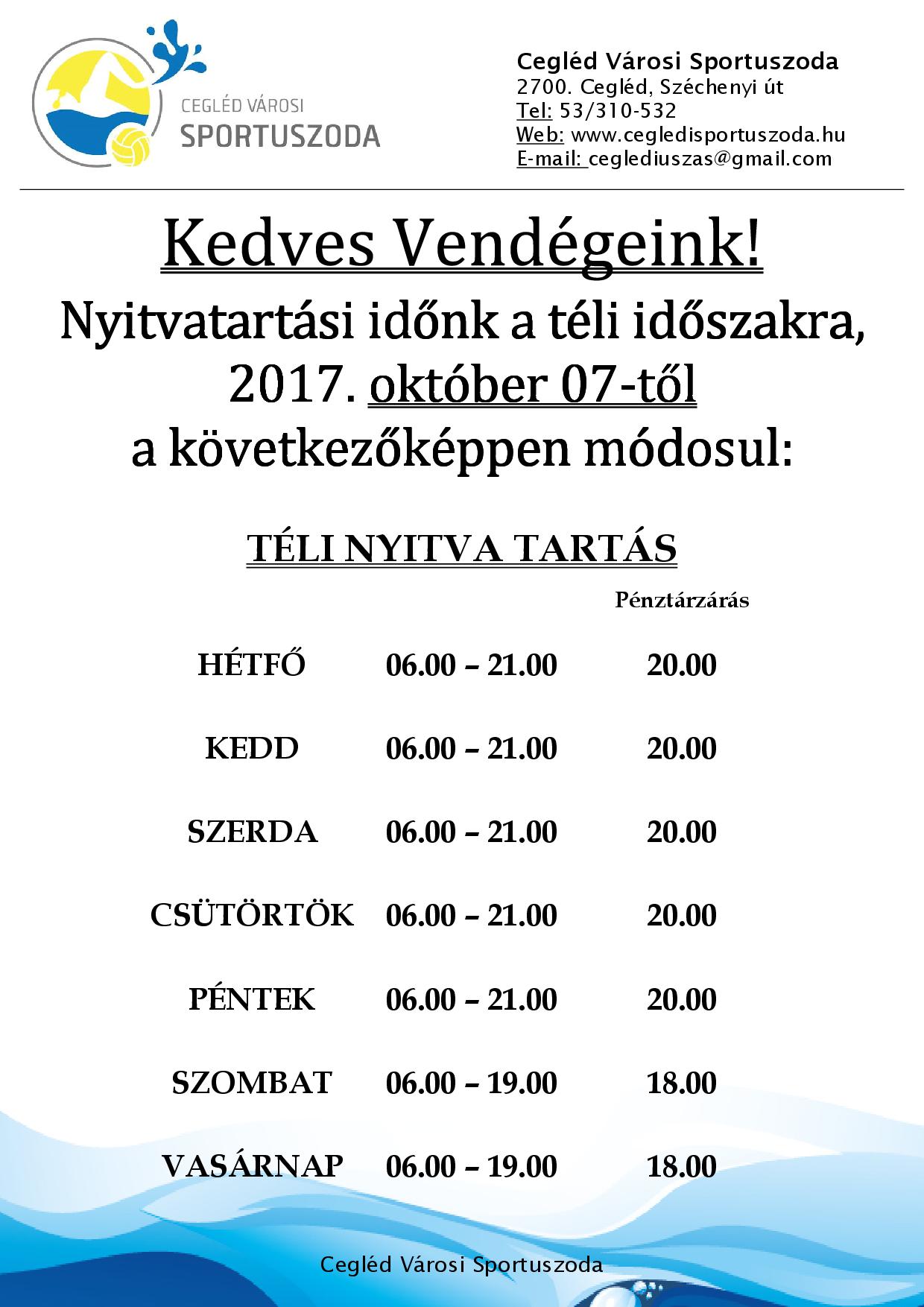 Téli Nyitva tartás