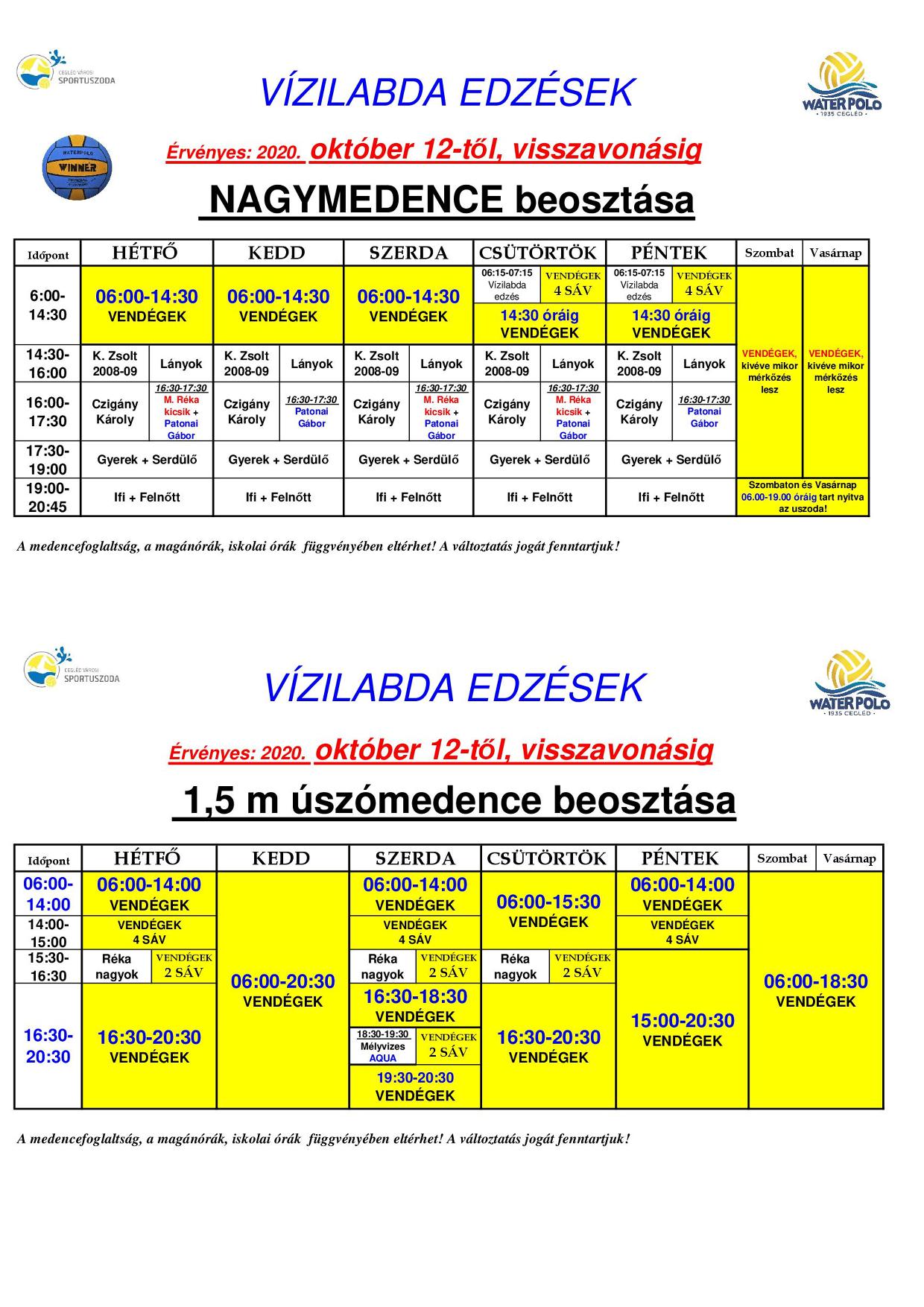 Úszómedencék beosztásai!