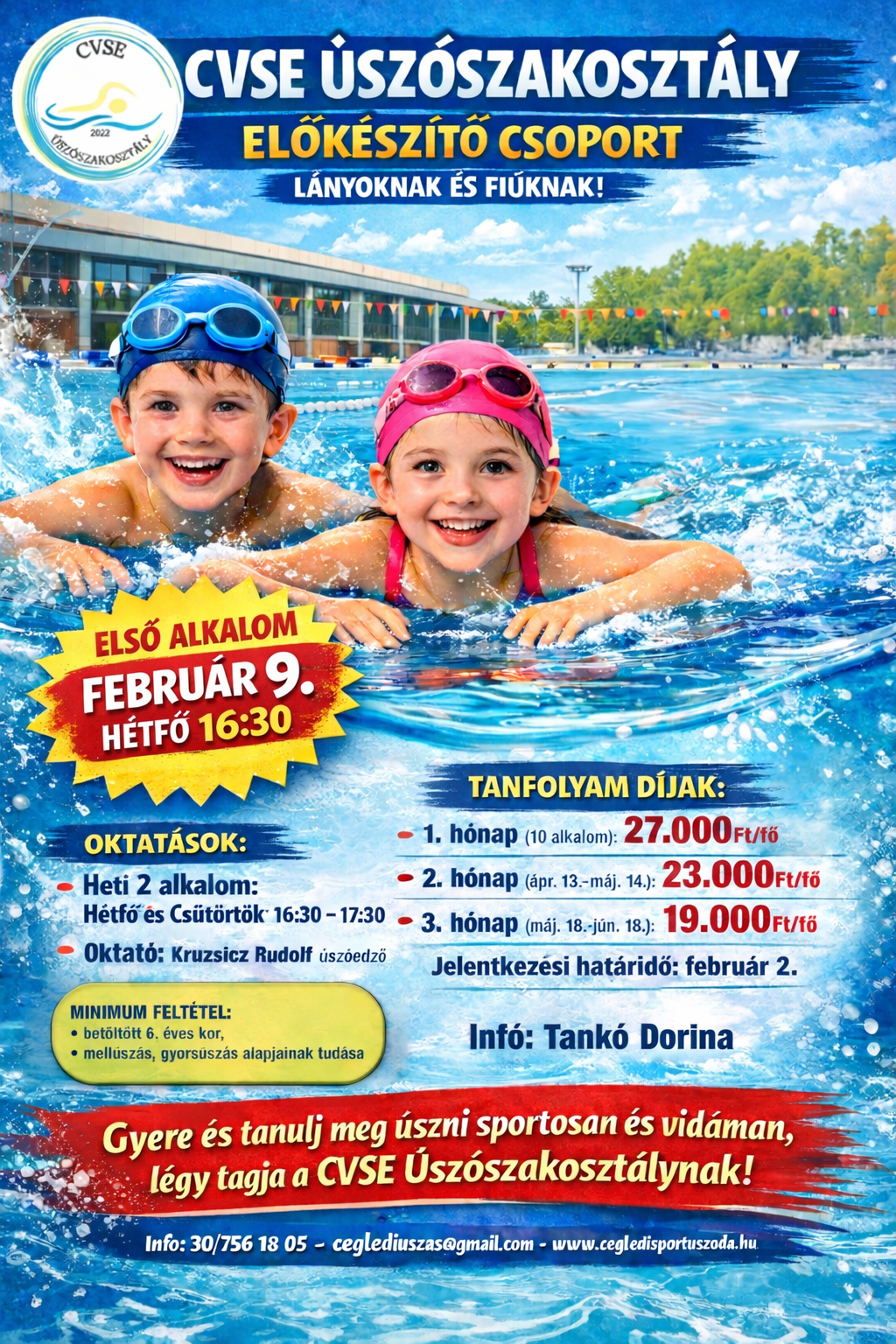 Úszószakosztály előkészítő csoport indul 2026. február 9-től!